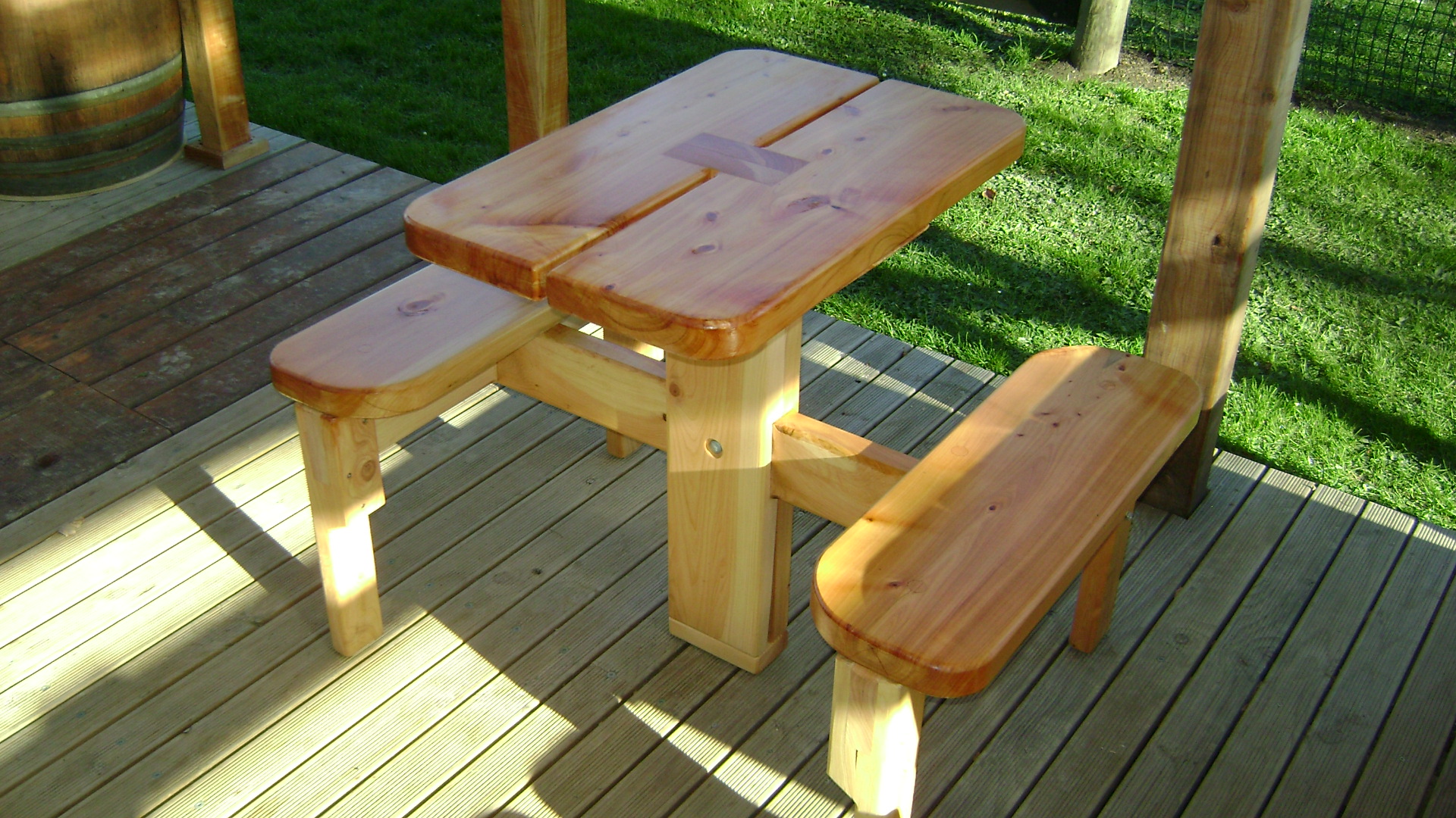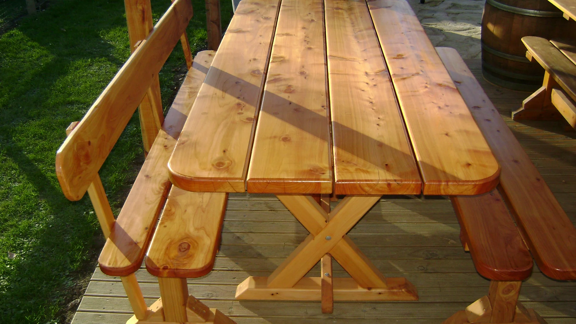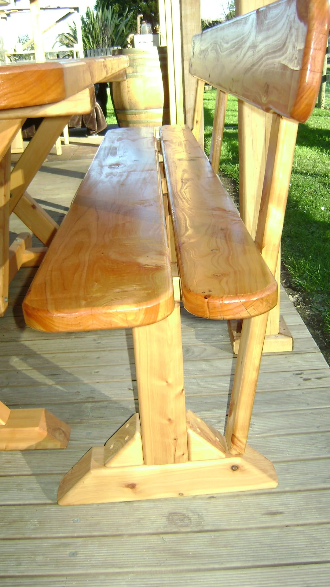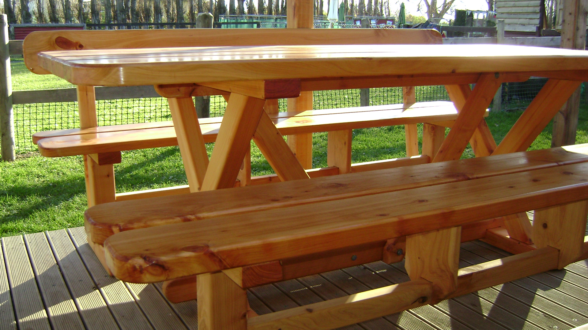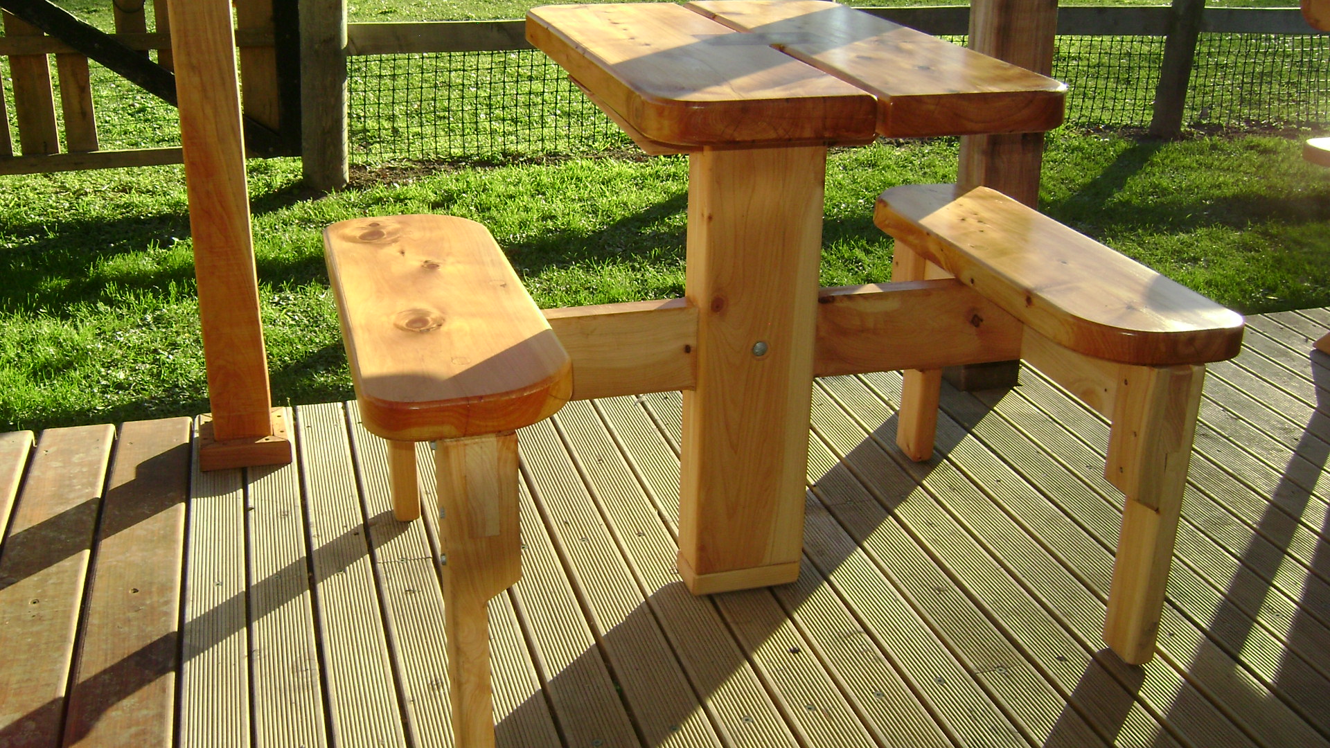 Locally grown macrocarpa milled onsite and hand crafted into table and benches.